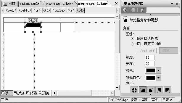 为了美观,在制作网页时还需要添加一些圆角图片来修饰网页,如导航工具条边缘等。以前在网页中添加这些图片非常麻烦,而在FrontPage2003中我们可以通过对单元格角部属性的设置轻松解决这一问题。首先在“单元格格式”窗口中单击“单元格角部和阴影”,随后在下面出现了“角部”和“阴影”的设置窗口。在“角部”项中点选“使用默认图像”选项,随后设置好该角部的宽度和高度,并在下面的颜色中设置好该角部的颜色。设置后在“应用”中选择一种角部样式,即可将该角部添加到单元格中。此外,我们可以通过“使用自定义图像”来添加一个自制的图片样式(图2)。