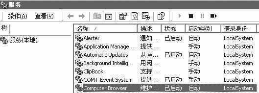 方法一:在工作组中设置一台Win2000 Server系统的机器,不安装域控制器(这样对机器的硬件要求可以降低)。把该计算机命名为server1,“服务”里Computer browser 服务必须是“自动启动”(图1)。将工作组中其他Win2000系统的计算机中“服务”里的Computer browser 停止,启动类型改成“手动”或“禁用”。这样就可以保证主浏览器始终由server1充当(除非该计算机关闭)。如何确认主浏览器已经由你所设定的计算机充当了呢?这里介绍一个Win2000下的工具软件browstat.exe。该软件可以由Win2000的安装光盘根目录下的SUPPORT\TOOLS下的压缩包support.cab中得到,在Win2000的命令提示符下直接运行browstat dn来显示当前浏览器绑定了几个协议(图2)。