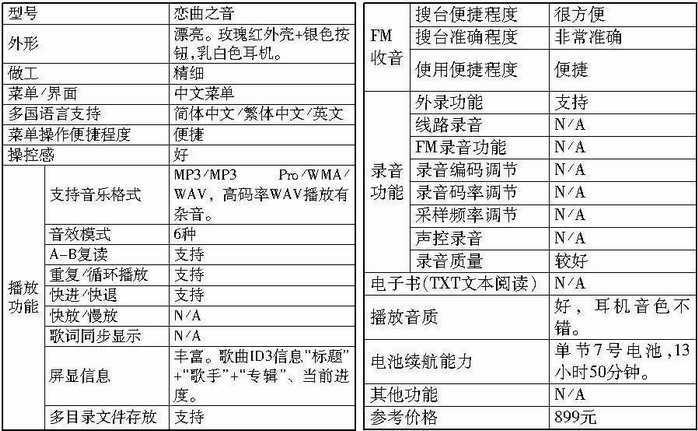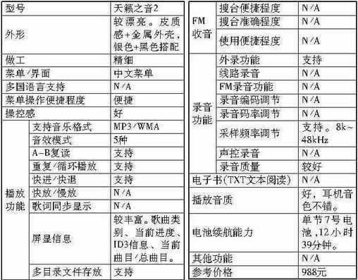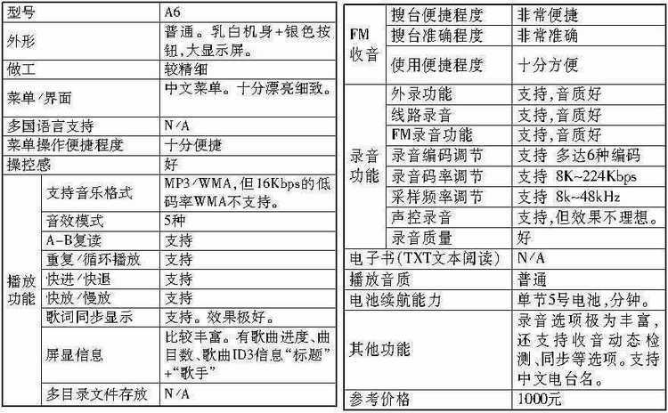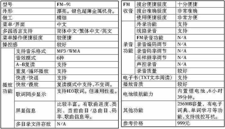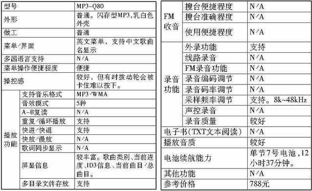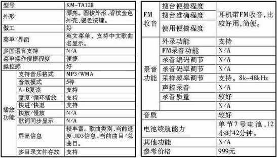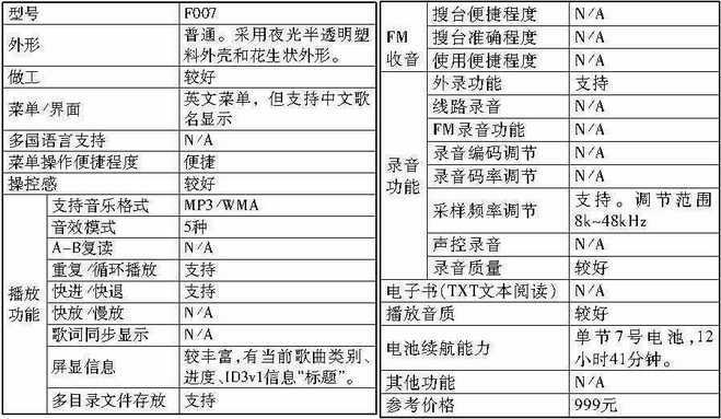 另外,此次参测的产品全部支持VBR动态码率和320Kbps的高码率MP3,且存储容量至少都是128MB。