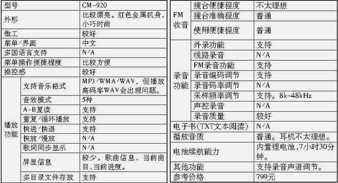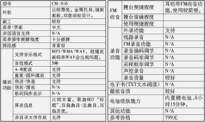 CM-910内部并没有提供收音功能,而是配了一副带有收音功能的耳机。这种耳机的FM收音效果还不错,使用也方便,但音色也不算太理想。建议大家购买时还是换一副稍好点的耳机。