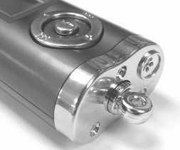 该款MP3拨动轮的按钮部分比较宽大,手感不错,而且布局合理,操控感好。它的录音文件为WAV格式,支持从8kHz到48kHz的录音采样频率调节。可录音约10小时。菜单依旧是英文,但支持中文歌曲名显示。不过我们注意到一个小问题,就是在子目录中的中文歌曲名有时显示会出错,成为乱码,但不影响播放。