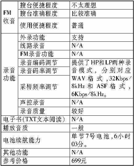 当然,遗憾之处也有:低码率的WMA文件播放存在问题;录音为专用格式ACT,需要自带软件的转换才能变成WAV等通用格式。