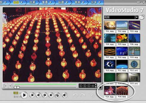视频捕获完后,接下来我们就可以对捕获的视频进行编辑了。点击主界面最上方的“编辑”按钮,在右边的素材库选择“视频”,这时右边出现了素材库中视频素材的略图。这里显示的是供你选用的片头片尾等素材。对这些现有的素材稍加编辑后我们就可以用它了。这里还是先看看我们刚才采集的内容怎么样吧!点击素材库右上方的打开文件夹图标的“加载视频”按钮,弹出打开视频文件对话框,找到你捕获的视频文件路径,将它们选中后点击对话框中的“打开”按钮,这些素材就加入到了素材库的列表中(图7)。你可随时调出来欣赏。