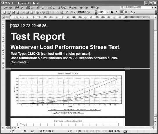 如果你想输出Word格式,则点击“Report(Word)”按钮,弹出“Export Results to MS Word”对话框,在“Select Items To Include In Report”中选择输出的项目,系统将自动建立一个Word文档,并显示指定的测试结果(图2)。如果你想输出为网页文件,则点击工具栏上的“Report(HTML)”按钮,而后程序将自动建立一个分帧的网页文件并显示相关的测试数据。相对而言,网页格式由于支持使用超链接,因而在数据查看上更为便捷一些。对于输出文件,大家可以选择将它保存在硬盘上。