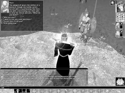 在山上的Frozen Cave前遇到一只叫Scrivener的小怪物,它说洞里有个人,因为对抗Mephistopheles而被封在里面了,需要了解某些咒语才能破解禁咒。带着它依次到地图上标记的Treason、Dimension、Infinity三个石柱处,每到一个石柱和小怪物对话一次,遂解开洞前的法术。进洞内看见一冰雕女战士像,在旁边的木堆上用三棵浆果点燃一团大火,融解坚冰。苏醒的女战士似乎并不高兴你这样做,并向你攻击,在濒死时停手,倾听她的经历,询问,质疑,思想后,这位传奇圣武士选择赎罪之路而重获神佑,并愿和你一起并肩作战。