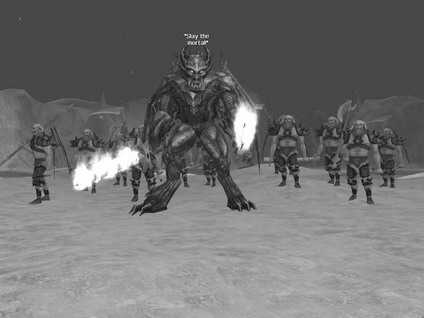 最后的地方,最后一个魔鬼守卫出现了,并召唤出一批血战炮灰来消耗你。将它消灭后,继续按指引的路线走到战争机器坟场,找到一个可用的投石器。变身成土元素把投石器扔过去,再过去用投石器炸开冰牢。在左边中间的冰牢中解救出Knower of Names,然后可以向她询问Reaper的真名和购买其他人的真名,甚至包括Mephistopheles的(可以通过先知道Knower of Names的真名然后强迫她说,耗费70万GP),另外还有沉睡者的真爱的名字。在得知Reaper的真名后传送回City of Lost Soul,根据买到的真名可以去完成一些任务,然后回到GateHouse里用真名命令Reaper把你传送回拖瑞尔星球。
