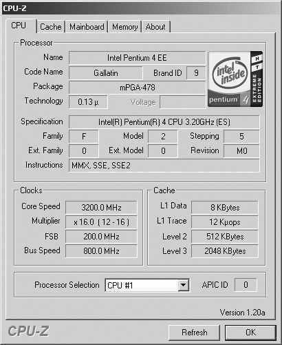 在Intel早先发布的官方资料中,曾经明确地指出P4 EE仍然采用Northwood核心,不过我们通过CPU-z看到的P4 EE核心代号为Gallatin,这个其实是Intel服务器处理器Xeon MP的核心代号,而且Stepping也为5,和Xeon MP一样。因此不排除可能P4 EE采用了Xeon MP的核心。