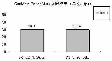 GunMetal对于显卡的要求非常高,此时显卡已经成为瓶颈。因此在此项测试中,P4 EE与P4 C获得的分数相同,所以,想玩这样高要求的3D游戏,选用一款强劲的显卡比一款强劲的CPU更为重要。