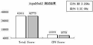 AquaMark3对于显卡的要求也非常高,而且缺省设置中就已经打开了各向异性过滤,对系统的性能要求很高。AquaMark3除了DirectX9的显卡测试外也包括独立的CPU测试分数。可以看到,P4 EE仍然在CPU得分上领先于P4 C,差距在6%左右。