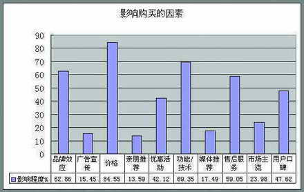 对IT行业的整体销售而言,价格(84.55%)仍然是最主要的影响因素。形成这种现状的主要原因是:1、国内消费者的收入水平有待提高,IT产品的价格承受能力有限;2、IT市场还不够成熟,消费者的品牌意识还需要提高;3、总体上来看IT商家的品牌管理方法还需要完善,营销手段不丰富,缺乏创新。