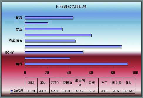 朗科以58.66%的消费者购买倾向成为2004年最具市场潜力的品牌,通过营销努力去实现市场潜量将是朗科最重要的工作。爱国者在2003年推出的USB迷你Ⅱ代(U盘型)等产品在市场推广和占有上也有上佳表现。