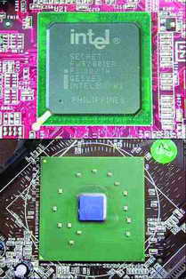 Intel P4芯片组,从845系列到850系列、848P、865系列直至875P,在对FSB、HT、USB以及SATA的支持上都有了长足发展。845E以后开始支持USB2.0及533MHz FSB、HT;到了848P、865系列时,开始支持SATA、AGP 8×(图3,Intel865系列南北桥)。