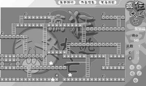 这个游戏源自于经典游戏《警察抓小偷》。整个逃亡故事共分为五篇:东邪篇、西毒篇、南帝篇、北丐篇和中神通篇。东邪篇是这个系列游戏的第一部。你的任务就是在一个监狱中把所有的泡泡伙伴都救出来并成功逃脱。行走路线用键盘上的方向键控制,按“Z”和“X”键就可以分别在左右两边挖陷阱来困住看守(图6)。