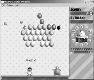 在这个游戏里你扮演的是一个小男孩,他用自己独有的方法孵化小鸡──用石头砸蛋壳。按鼠标左键发射最初的石头,蛋壳被石头碰裂后小鸡就会落下来,这时小男孩就要快速调整位置接住小鸡,同时还要防止从旁边悄悄逼近的怪兽,躲避怪兽的方法是快速从它身上跑过去,或者用石头打它(图7)。