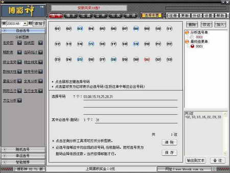 分析评价:操作界面友好,使用起来比较方便,对于“双色球”软件而言功能已经是非常全面的了。