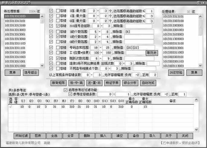 软件名称:新奇儿足彩优化大师V2003.12.10标准版