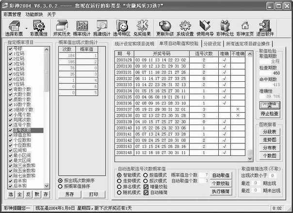 分析评价:跟同类彩票软件比起来,《彩神2004》支持的彩票种类更多,功能更加强大。