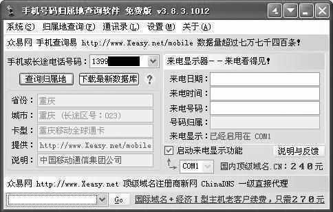 软件除了具有查询电话号码的功能外,还具来电显示功能,不过电话没有申请来电显示功能的用户来说这一项功能用不上,作者在此也不赘述了。