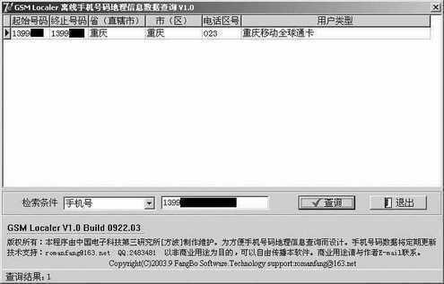 软件名称:手机号码归属地查询