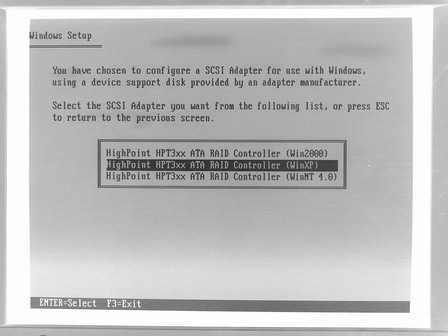 6.安装操作系统时有一点很重要。在安装程序以英文提示“按下F6安装SCSI设备或RAID磁盘”时,一定要按下F6来安装RAID控制芯片驱动,这一步必须要有软驱,没有软驱将不能安装驱动。