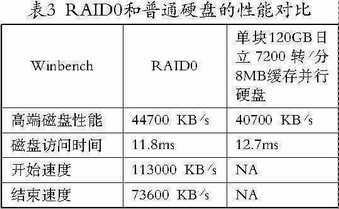 使用RAID0后,能够明显感觉到硬盘的读写速度加快。以前安装一些大型软件,耗时较长,现在很快就能完成。表3列出了一些实际测得的数据,Winbench的高端磁盘性能反映了运行Premiere、Photoshop等多媒体处理程序时的磁盘读写速 度,具有相当的参考意义。我们还用PCMark2004测试了这台电脑的WMV和DivX的视频压缩速度,分别达到了46.862fps和51.748fps的速度。