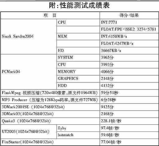 测试用软件:WinDVD 5;PowerDVD XP5;QuickTime Player 6;Windows Media Player 9;Windows Media Encoder;3DMark2001SE、3DMark03、PCMark04、SiSoftware Sandra 2004