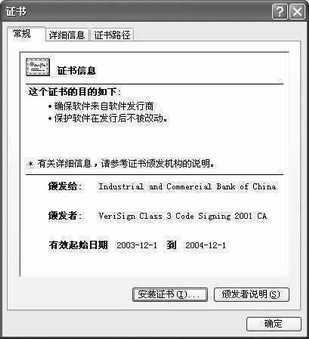 3.在证书导入向导的帮助下完成证书的安装,这时再进入数字证书窗口的“证书路径”标签下,将能够查看到这份工商银行的数字证书已经正确安装到计算机中了。