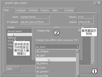 ①Main(主要设置)标签显示的是游戏主要设置以及游戏人数和服务器运行时间等。