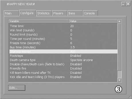 服务器管理窗口包括Main(主要设置)、Configure(配置)、Statistics(统计)、Players(玩家)、Bans(禁止玩家)和Console(控制台)6个主要项目。可以看出CS1.6服务器平台一改以往DOS界面操作方式,更加方便了服务器的管理和维护。