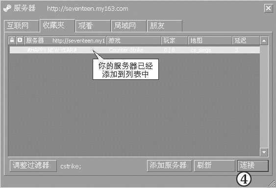②如果在“互联网”标签中没有找到你的服务器,可以进入“收藏夹”标签,点击“添加服务器”按钮添加服务器。