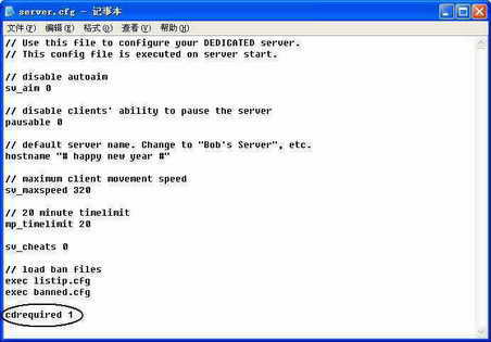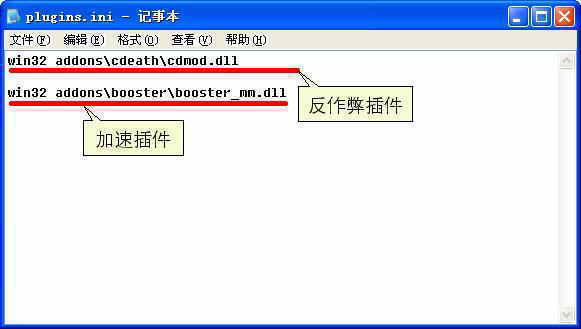 ②安装反作弊插件(Cheating-Death)(下载地址:http://www.unitedadmins.com/files/cd-server-4_8_0-en.zip)。下载软件后解压到hlserver\cstrike\addons\cdeath目录下,在hlserver\cstrike\addons\metamod目录中新建立一个plugins.ini文件,用记事本打开并输入win32 addons\cdeath\cdmod.dll后保存退出,然后打开hlserver\cstrike\server.cfg,在最后加上一句cdrequired 1,表示客户端必须开反作弊器,否则就被Kick。