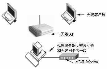 家庭无线网络的Internet连接共享可以采用两种不同的方式,一是使用代理服务器,二是使用无线路由器。