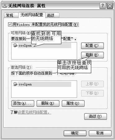 ④单击“高级”按钮,确认选择了“任何可用的网络(首选访问点)”选项,使计算机可随时接入任何类型的可用网络(图7)。