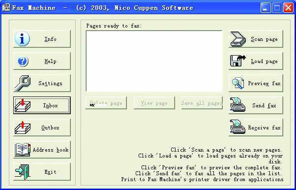 此外,Fax Machine还为我们提供了接收传真的功能,同时也可以对发送和接收的传真进行管理(通过Inbox、Outbox进行)。对利用扫描仪发“传真”感兴趣的朋友不妨立刻动手试试!