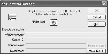 此时图1中的“Window module”(窗口模块)、“Executable module”(可执行模块)等会自动填入相关信息。点击“Register class”按钮,再点击随之被激活的“OK”按钮,会弹出“ActiveTextBox descryiption”对话框,这里也可以设置该文本框的说明性文字,如“查找内容”。设置完毕后,退回至程序主界面。