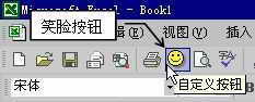 2.单击“命令”选项卡,再单击“类别”列表中的“宏”。在“命令”列表中,将“自定义按钮”拖放到常用工具栏上,则工具栏上出现一个名为“自定义按钮”的按钮,显示为一个笑脸图标。