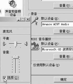 提示:要录音必须有话筒,同时把你电脑的“控制面板→声音和音频设备→录音→音频→麦克风”下面的勾选项选中,如图12所示。