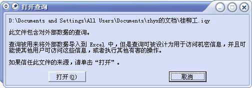 当一个新的交易日结束以后,必须将新交易日的数据添加到“行情数据”工作表。此时单击Excel中的“打开”按钮,选择对话框中的“文件类型”为“查询文件”,找到前面建立的查询文件单击“打开”,就会弹出如图4所示的“打开查询”对话框。建立网络连接以后再次单击“打开”按钮,Excel就会自动连接到网站进行数据更新,并将新数据放在与查询文件同名的工作表内,这时你就可以把其中需要的数据添加到图3所示的表格中了。
