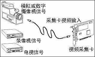 视频采集卡又称视频捕捉卡,用它可以获取数字化视频信息,并将之存储和播放出来。很多视频采集卡能在捕捉视频信息的同时获得伴音,使音频部分和视频部分在数字化时同步保存、同步播放(图1)。