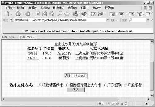 完成汇款单填写后点击“下一步”,随后的页面将显示汇款小结,如汇款总金额、汇费、短信回音费用等。如果你有多张汇款单需同时汇出,那请单击“填写下一张汇单”继续填写新的汇款单,否则的话你就可以点击“下一步”进入“在线支付”页面(图2)。“在线支付”页面中可看到你填写的所有汇款单,如果确认没什么问题了,就可以选择页面底部四种支付方式中你目前所能进行的方式。确定后你就可进入具体的支付页面了,输入相应的银行卡账号、密码就可完成整个汇款操作了。