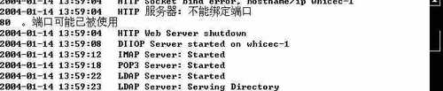 现在从桌面启动服务器,如果启动的时候出现图5所示的文字,说明HTTP服务并未正常启动,如果HTTP服务不启动就不能看到Lotus的Web界面(Lotus的Web Mail功能可不能小看,我们在后面客户端的配置里将详细介绍它的强大功能)。出现这种情况,请查看服务器是否和IIS等服务使用的端口有冲突。