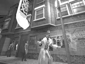 这是一款基于“黑暗世界”规则的第一人称视角RPG。氏族和党派之间的斗争是游戏情节的主线,原规则中的13个氏族在游戏中被缩减为7个。游戏一开始玩家就得决定加入哪一个氏族,每个氏族的能力各不相同,有的擅长隐身,有的则擅长心灵控制。作为一个新生的吸血鬼,玩家将在人类与吸血鬼共存的城市中闯荡,使用狙击枪、冲锋枪、火焰喷射器等现代武器和吸血鬼猎手、狼人进行战斗。最终是成为黑暗世界的霸主还是沦为氏族派系间争权夺利的棋子,要看玩家的表现。