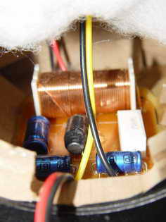 两只卫星音箱采用3/4英寸丝膜高音单元和3.5英寸高分子聚合物低音单元,箱体厚度为12毫米。在麦博H-200的卫星箱里你还能够看到在多媒体音箱里很少出现的一个部件──分频器,它的作用是将功率放大器输出的音频信号分成两路或三路(二分频器或者三分频器)。分别送到高、中、低音单元。中低档的多媒体音箱常常不设分频器,只是在高音单元上串接一个电容来滤掉低频信号。