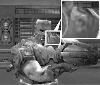 催化剂和ForceWare在OpenGL方面的画面表现差异相对较小,但是我们还是能看出两者的差距来。首先我们可以看到,在人物的头顶部分,ForceWare53.06的锯齿感要强于催化剂4.1,但是颜色显得更亮一些;其次,白色框中放大的部分,催化剂4.1的颜色过渡要柔和一点,但是显得要暗一些,而ForceWare则明暗对比较强烈,色彩边线较明显。