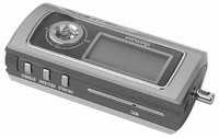 MH928外形方方正正,体积为71mm×38mm×24mm,重仅50g,采用塑胶压塑工艺制造。正面除了液晶屏外,就是屏幕旁边的五维导航按钮了。它的PLAY键、A-B键、FM、REC键统统置于主机上方,整体做工相当地精巧细致、布局合理。