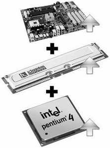 如果需要进行升级(严格来说是对硬件搭配的调整),我们可以将内存更换成更高频率的DDR内存(如DDR333和DDR400),它们分别能提供2.7GB/s和3.2GB/s的带宽,能在一定程度上缓解瓶颈(P4的处理能力已经足够了,不用更换,必要的时候可以超频)。当然必须增大内存的容量(建议至少升级到256MB,有条件的话可以增至512MB),这样在运行大型任务软件(如图像处理和游戏)时会明显感到系统反应速度的提升。若要更换主板,可以考虑采用865PE芯片组主板,因为它支持了Dual DDR(双通道DDR)技术,把现有的内存带宽提升了一倍。双通道DDR400的理论带宽为6.4GB/s,刚好可以满足800MHz前端总线的P4的需求,而且ICH5/5R的南桥能提供更多样化的功能。