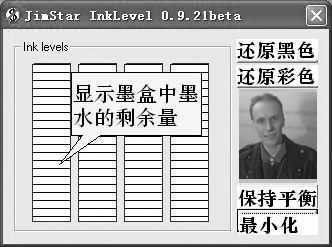 这是一款仅为314KB的免费软件,它的下载地址为http://jimstar.narod.ru/InkLevl0-9-21b.exe。该软件适用于Windows 9X/2000/XP操作系统,但它仅适用于EPSON打印机。