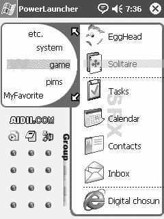 很不错的launcher软件,可以方便地执行系统内所有的应用软件,还提供了程序分类,快速启动程序等功能。有了这个程序会大大提高PPC的工作效率。