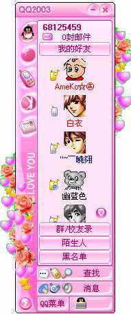 我们首先推荐的是一款叫做“情人节玫瑰”的皮肤(如图1),从名字就可以知道这是专门为情人节制作的皮肤,浪漫的粉红色基调用得恰到好处。左右两侧上下点缀的玫瑰和一个个粉红的心形,让整个皮肤摆脱传统QQ皮肤方方正正的外形,显出一种不规则的美。配上左侧工具栏上的“Love You”字样,使这款皮肤成为情人节的首选。