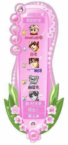 给大家推荐的第二款也是一款粉红基调的皮肤(图2),名字叫做“梦幻”。它的外形也确实够梦幻,可以说完全摆脱了方方正正的框架,底部绿色叶子配上粉红的主题,使得整个皮肤像一朵美丽的花朵。最有特色的就是底部的工具按钮被分别放在了两侧的一朵朵小花上,好玩又新奇。